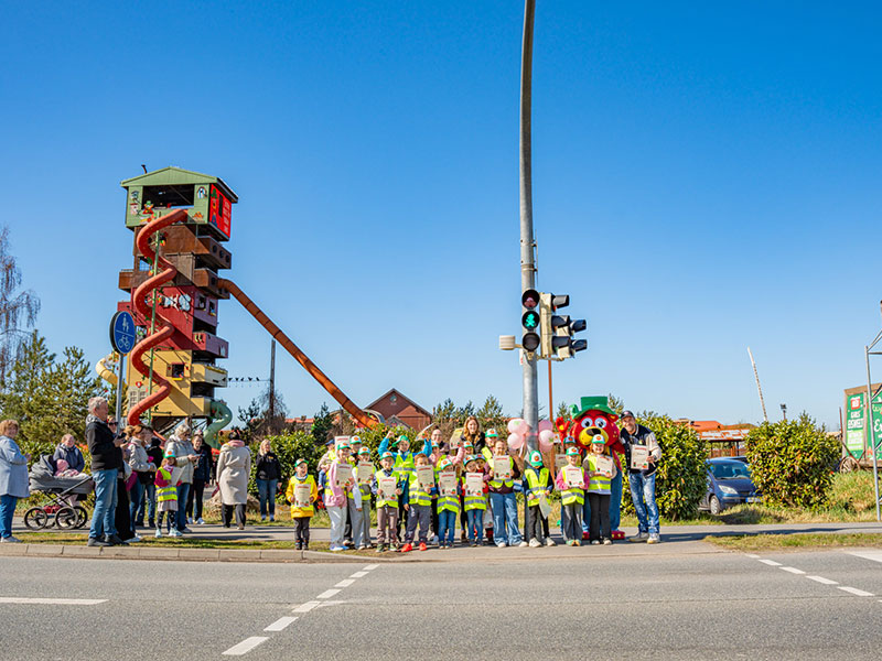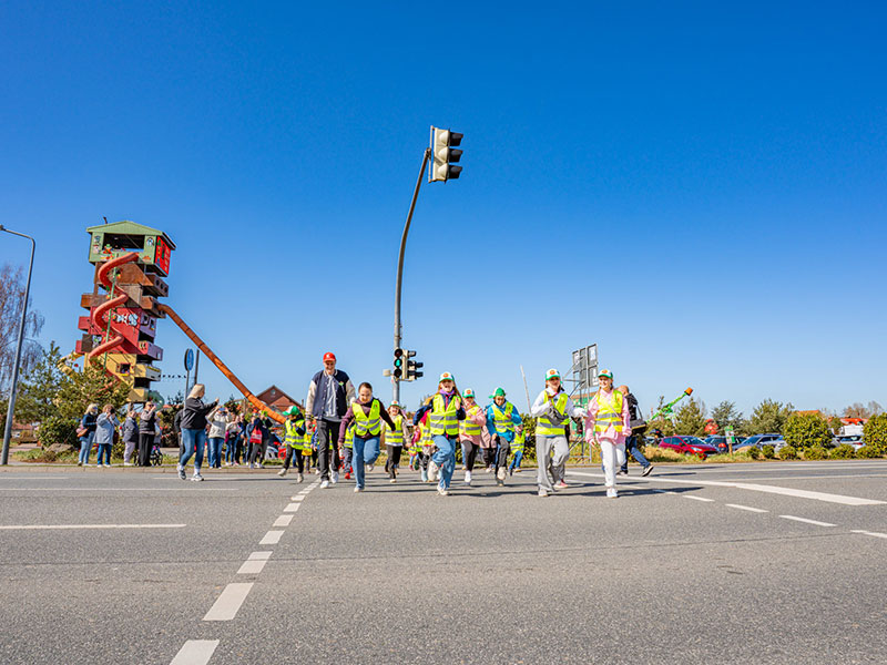 Dann kam der große Moment! Angeführt von Robert Dahl, Inhaber unserer Karls Erlebnis-Dörfer, begleitet von der Partymusik von Wetter Werner, überquerten alle gemeinsam zum allerersten Mal die neue Karlchen-Ampel. Ein historischer Augenblick, der zeigt: Bei Karls wird selbst der Straßenverkehr zum Erlebnis! Zum krönenden Abschluss gab es für alle Kinder eine Tageskarte, um den restlichen Tag im Erlebnis-Dorf zu verbringen und die Abenteuer fortzusetzen.
