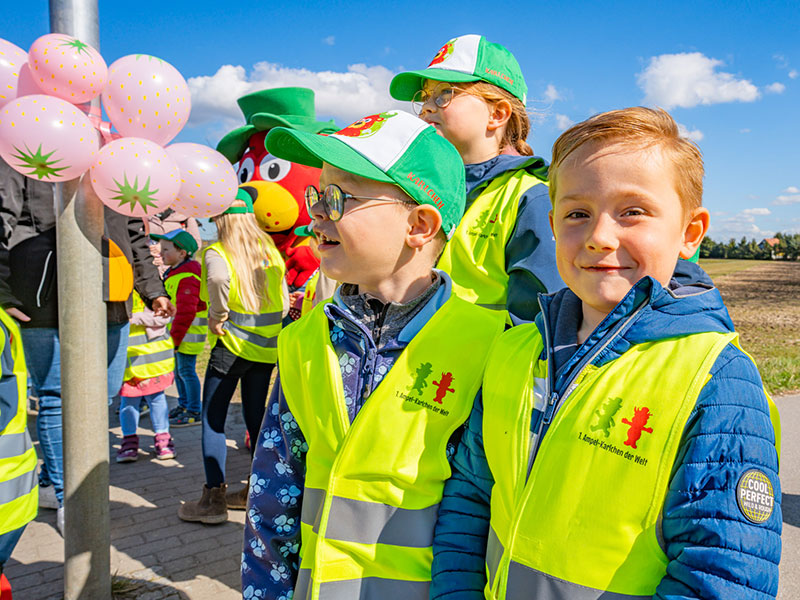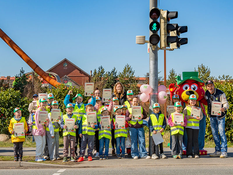 Für strahlende Augen sorgten nicht nur die leckeren Ampelkekse, sondern auch die spritzige Brause, die ganz abenteuerlich direkt aus einer echten Baggerschaufel serviert wurde. Damit die Kleinen immer sicher unterwegs sind, bekam jedes Kind eine eigene Warnweste geschenkt.