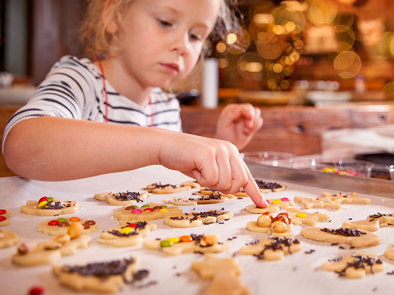 Das gemeinsame Backen ist ein echtes Erlebnis für alle Sinne. Kinder dürfen kneten, naschen und stolz ihre eigenen Plätzchen gestalten. Ob klassische Butterplätzchen, Vanillekipferl oder kreative Erdbeersterne – gemeinsam wird jede Backrunde zu einem kleinen Abenteuer voller Lachen, Mehlstaub und Weihnachtsstimmung.